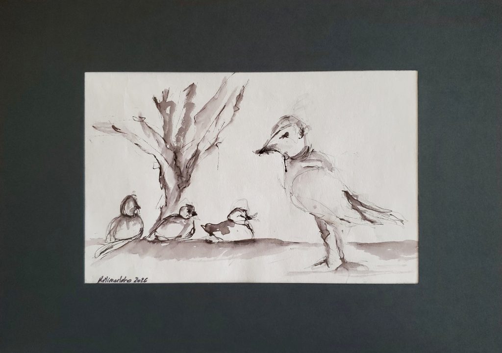 Trois oiseaux immobiles, comme suspendus entre béton et nature, observent le silence d’un jardin urbain niçois.